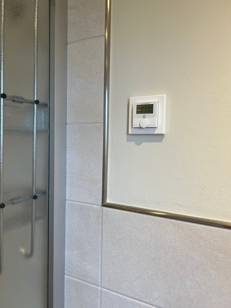 Im Ferienhaus Lea haben wir die smarte Heizungssteuerung erneuert und zugleich auch im Badezimmer einen Wandthermostat zur Selbstbedienung und besseren Erreichung der Idealtemperatur installiert. Dadurch können unsere Gäste die Wunschtemperatur nicht mehr nur im Wohn- und in den Schlafzimmern individuell einstellen.